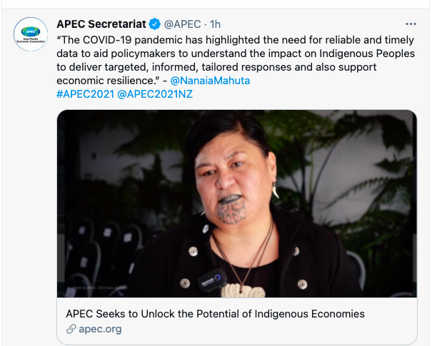 El crecimiento económico inclusivo es un tema importante de la agenda bajo el liderazgo de APEC de Nueva Zelanda este año a medida que sus economías miembros se unen, trabajan y crecen, juntas para reconstruir mejor. Los altos funcionarios de APEC reconocieron el potencial de la economía indígena y alentaron la cooperación con respecto a la recopilación de datos y el intercambio de mejores prácticas para medir las contribuciones de las economías indígenas.
