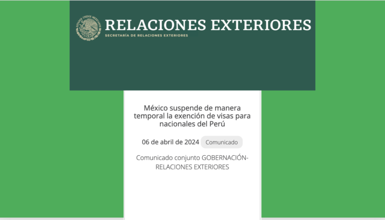 Por ello, y con el objetivo de proteger la seguridad y bienestar quienes se encuentran en situación de movilidad humana, así como para colaborar en la lucha contra las redes de tráfico de personas, la Secretaría de Relaciones Exteriores (SRE), en coordinación con la Secretaría de Gobernación (Segob), ha optado por reintroducir de forma temporal el requisito de visa para las y los ciudadanos con pasaportes ordinarios de la República del Perú que deseen viajar a México.