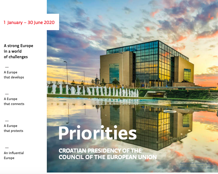 Desde el 1 de enero al 30 de junio de 2020, Croacia se hará cargo de la presidencia del Consejo de la Unión Europea por primera vez. Durante este período de seis meses, Croacia dirigirá las actividades del Consejo, fomentando la cooperación y el acuerdo entre