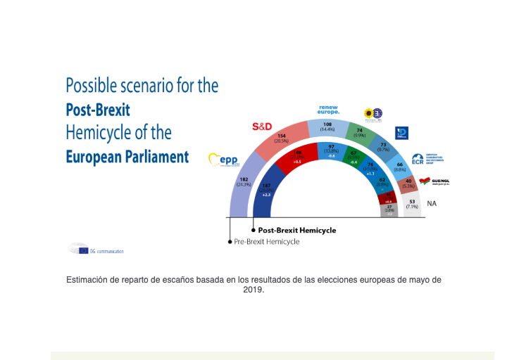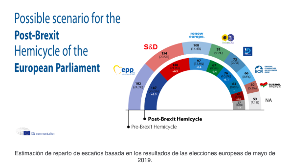 A partir del 1 de febrero, el número y distribución de asientos en el Parlamento cambia como consecuencia de la salida del Reino Unido de la UE.