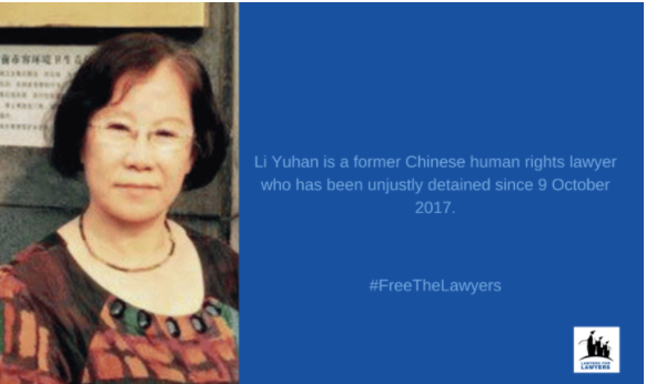 El 9 de octubre de 2017, la abogada de derechos humanos Li Yuhan, fue detenida bajo sospecha de «provocar disputas y provocar problemas». Li Yuhan había trabajado activamente como abogada defensora y defensora de las víctimas de violaciones de derechos humanos, incluidos los abogados de derechos humanos que fueron detenidos en la llamada «represión del 709».