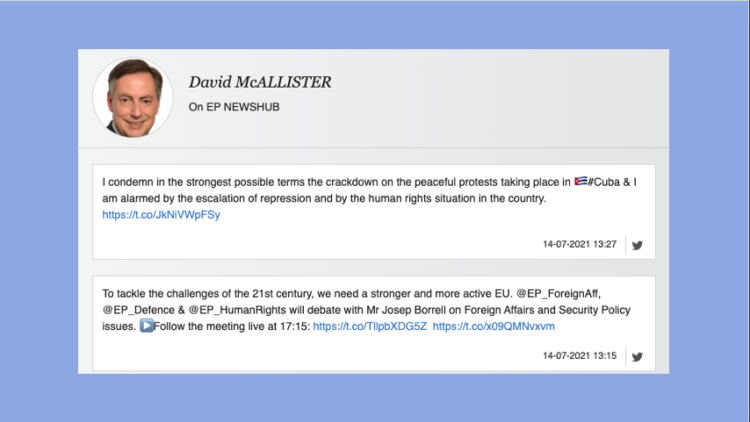 El presidente de la comisión de Asuntos Exteriores, David McAllister, condena la última escalada en la represión de las protestas en Cuba. |