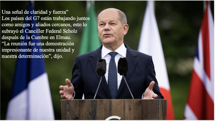La Cumbre del G7 en Elmau demuestra el gran poder de las alianzas democráticas. Esto fue confirmado por la declaración final y otras declaraciones emitidas por el G7 y sus socios, dijo el canciller federal Olaf Scholz después de la conferencia de tres días. “La Cumbre del G7 en Elmau fue una reunión crucial en un momento excepcional”, dijo el canciller federal Scholz.