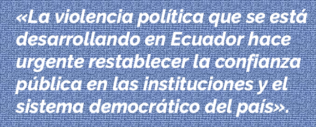 El asesinato de Villavicienco y la violencia política que se está desarrollando en Ecuador hacen urgente restablecer la confianza pública en las instituciones y el sistema democrático del país. Esta será la tarea del nuevo gobierno y de la nueva asamblea nacional, que debe, mucho más que en los últimos años, aprender a trabajar juntos, más allá de sus diferencias, en interés del país.