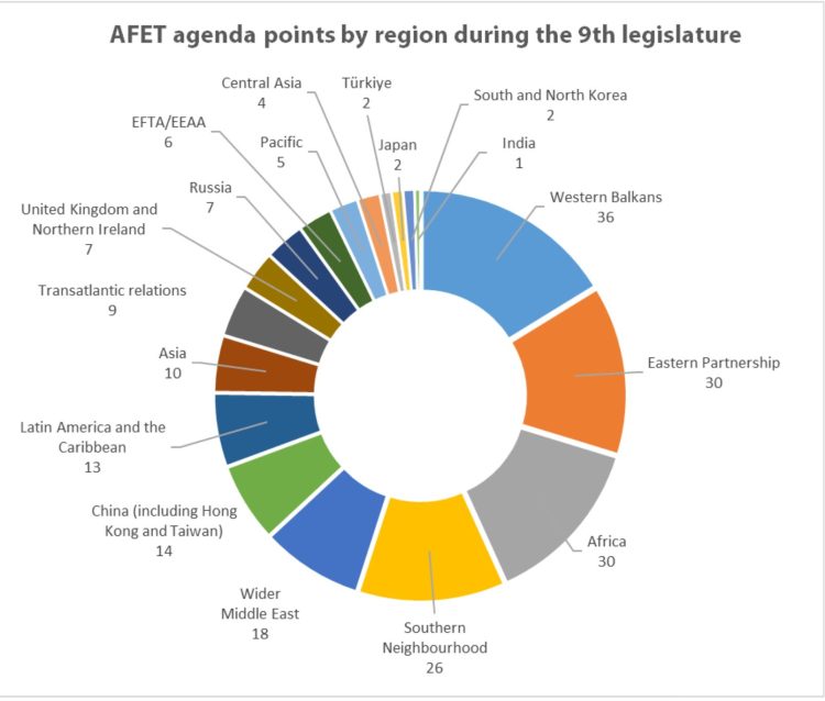 AFET ha mantenido un enfoque constante en las relaciones entre la UE y América Latina, reconociendo la importancia estratégica de la región en términos de comercio, desarrollo, y derechos humanos. La Cumbre CELAC-UE, que tuvo lugar durante esta legislatura, subrayó la relevancia de fortalecer los lazos entre ambas regiones, enfocándose en temas como la recuperación post-pandemia, el cambio climático, y la cooperación en derechos humanos.