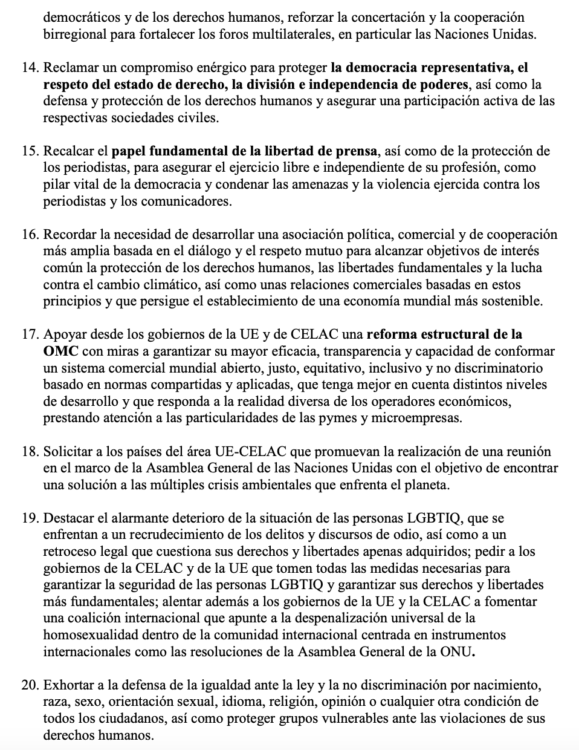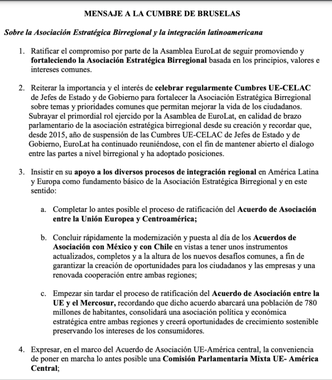 Mensaje EUROLAT a la Cumbre de Bruselas (1era parte)