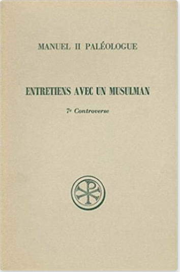 [1] De los 26 coloquios (διάλεξις. Khoury traduce «controversia») del diálogo («Entretien»), Th. Khoury ha publicado la 7ª «controversia» con notas y una amplia introducción sobre el origen del texto, la tradición manuscrita y la estructura del diálogo, junto con breves resúmenes de las «controversias» no editadas; el texto griego va acompañado de una traducción francesa: Manuel II Paleólogo, Entretiens avec un Musulman. 7e controverse, Sources chrétiennesn. 115, París 1966. Mientras tanto, Karl Förstel ha publicado en el Corpus Islamico-Christianum (Series Graeca. Redacción de A. Th. Khoury – R. Glei) una edición comentada greco-alemana del texto: Manuel II. Palaiologus, Dialoge mit einem Muslim, 3 vols., Würzburg-Altenberge 1993-1996. Ya en 1966 E. Trapp había publicado el texto griego con una introducción como volumen II de los Wiener byzantinische Studien. Citaré a continuación según Khoury.