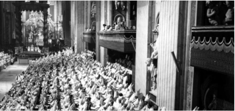 Foto: I padri conciliari nella Basilica di San Pietro il 12 ottobre 1962 (LaPresse)