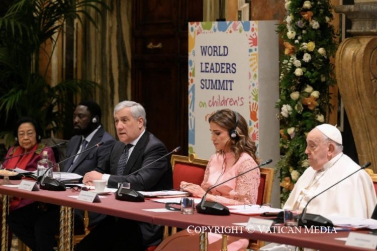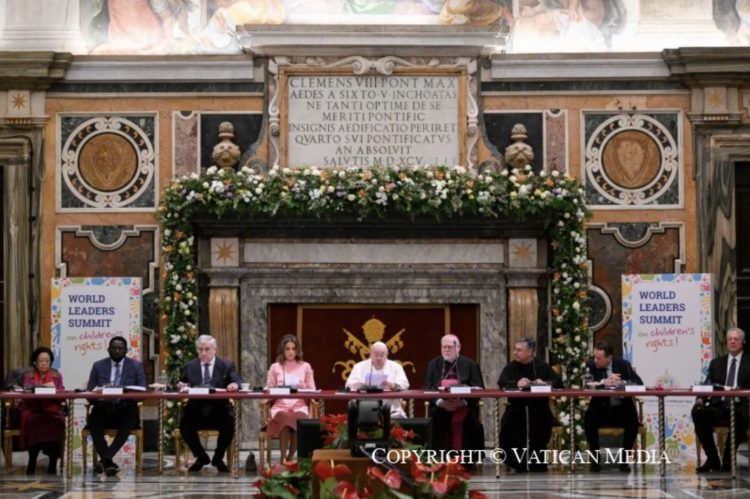 Queridos amigos, les doy las gracias y los animo a aprovechar al máximo la oportunidad de este encuentro, con la ayuda de Dios. Rezo para que su contribución pueda ayudar a construir un mundo mejor para los niños y, por tanto, ¡para todos! Me da esperanza que estemos aquí, todos juntos, para poner en el centro a los niños, sus derechos, sus sueños, su exigencia de futuro. ¡Gracias a todos ustedes y que Dios los bendiga!
