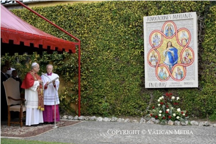 Nos reúne hoy un feliz acontecimiento: la inauguración de un mosaico dedicado a la Santísima Virgen María y de una imagen de Santa Rosa de Lima aquí en los Jardines Vaticanos. Este gesto renueva los profundos lazos de fe y amistad que unen al Perú —como saben un país tan querido para mí— con la Santa Sede.
